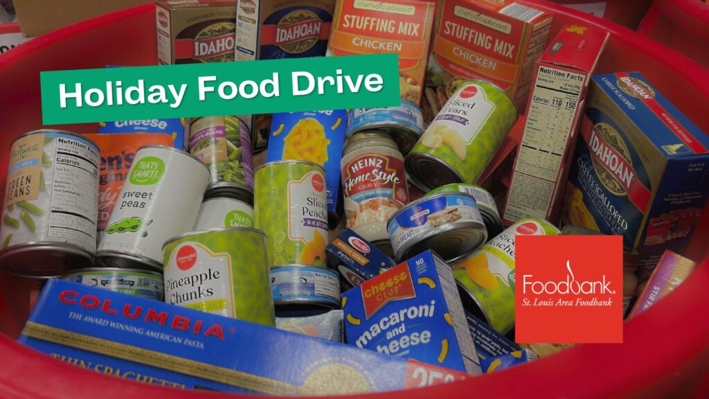 The weather outside sure is frightful, so let’s help make our local community more delightful! We will be collecting food donations for St. Louis Area Foodbank this holiday season, as they work to help the almost 400,000 people in our region, including almost 120,000 children, facing food insecurity.