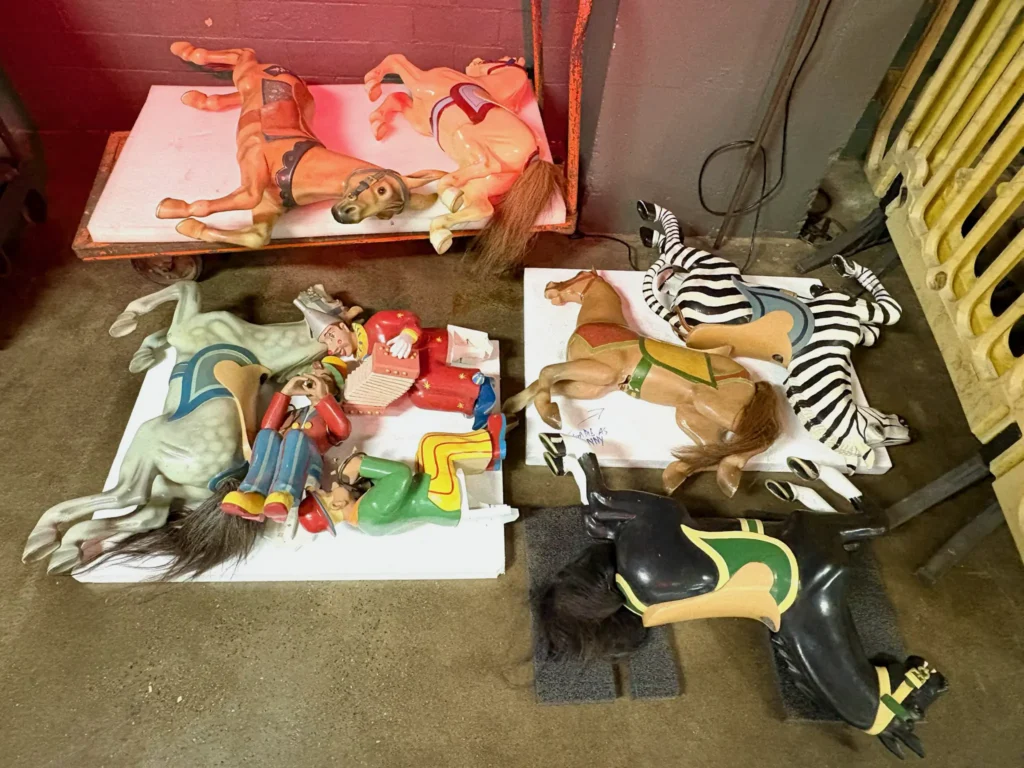 In 1988, this carousel was restored by sculptor Carlos Sardina and his wife Judy as a historical art preservation project. Carlos also added special features you’ll notice while you ride: a charming white picket fence, small sculpted musicians around the center, and detailed finishing touches that make this carousel uniquely his. The Sardinas toured their carousels from the late 1980s through the early 2010s, even renting one for a production at The Muny, sharing joy across the country.